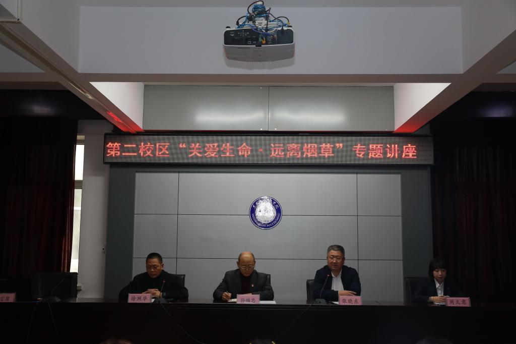 11月18日,第二校区“关爱生命,远离烟草”专题讲座,在图书馆三楼多功能厅如期举办。新葡的京集团350vip8888首页副院长孙福忠到会并讲话,各部门及二级学院师生代表近120人参加会议。会议由学校综合办公室党支部书记张晓东主持。