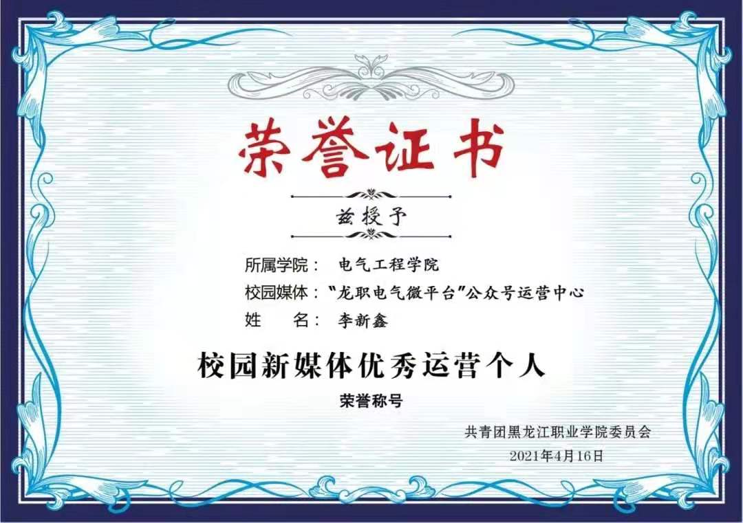 经过各学院述职,工商管理学院和电气工程学院两个学院分别荣获2020-2021学年“星级校园微信公众号”荣誉称号;工商管理学院团总支书记于德洋、电气工程学院团总支书记姜玲两名老师分别荣获“星级校园微信公众号优秀指导教师”荣誉称号;工商管理学院团总支副书记杨轶琪、电气工程学院团总支副书记李新鑫两名同学分别荣获“校园新媒体优秀运营个人”荣誉称号。与会领导向获奖单位和个人颁奖了荣誉证书。