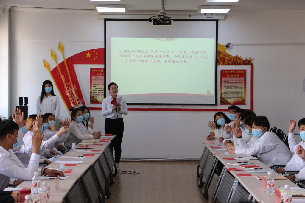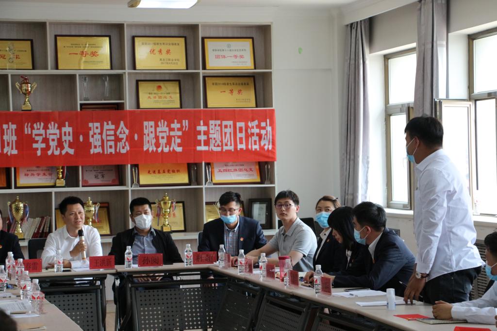 团日活动中,王洪新现场观摩了工商管理学院连锁管理19-01班团支部主题鲜明、形式多样、精彩纷呈的主题团日活动。整个团日活动从“观看建党百年主题MV《少年》、团员代表作《信仰之光接力传,复兴之路谱新篇》主题演讲、东北抗联革命烈士杨靖宇赵一曼故事宣讲、党史专题知识有奖竞答、《没有共产党就没有新中国》红歌合唱”五个环节,带领同学们进入历史长廊,追忆中国共产党成立百年波澜壮阔的历史征程,感召青年学子的责任与担当。在座谈交流中,王洪新对新葡京官网团员青年提出了三点希望:一是让理想信念成为青春最基底的颜色。鼓励团员青年要有爱党、爱国情怀,不忘初心跟党走。二是让肯学肯干成为青春最根本的基石。鼓励团员青年要多读书、多实践,掌握真本领,成为有理想、有担当的青年大学生。三是让凝聚服务团员青年成为团组织最忠诚的担当。团支部要成为凝聚青年、引领青年、服务青年的组织载体,扎实推进团支部的“三会两制一课”制度。