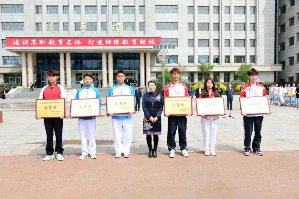 会上,学生工作部部长赵彦生宣读本次军训先进集体和先进个人的表彰决定。学校领导和学生工作部班子成员为获奖集体代表颁奖并合影留念。