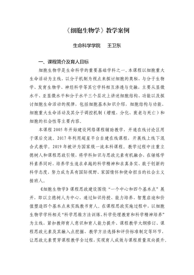 本文分享了优秀课程思政教学案例-《细胞生物学》,供各位老师学习参考。
