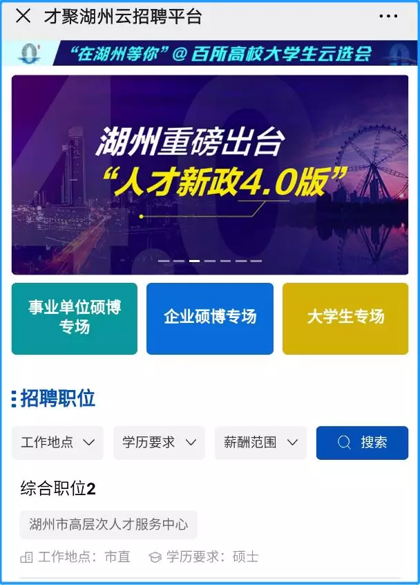 日前,湖州正式发布了“才聚湖州云招聘平台”。平台为广大学子提供线上咨询、线上报名、线上面试、线上签约等全流程求职服务。