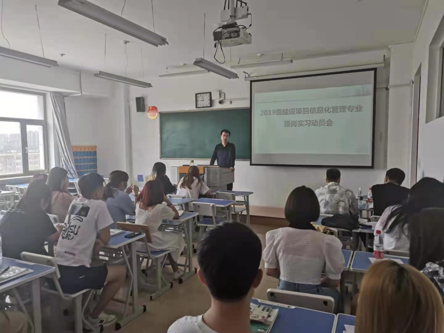为落实建设项目信息化管理专业顶岗实习工作,建设项目信息化管理专业于6月11日上午在清华楼711教室召开2019级学生顶岗实习动员大会。建筑工程学院书记程刚、建设项目信息化管理专业教研室主任郝建涛、辅导员杨天伦及2019级全体建设项目信息化管理专业学生参加此次大会。