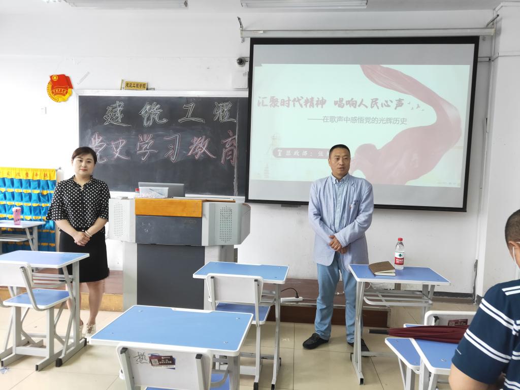 2021年6月18日下午13:30,“建筑工程学院党史学习教育专题讲座”在清华楼702教室举办,本次讲座特邀新葡京官网思政部教师张旭为学院师生作了《汇聚时代精神 唱响人民心声——在歌声中感悟党的光辉历史》的专题讲座,学院无课教工、2020级学生干部及入党积极分子代表聆听讲座,讲座活动由学院党总支书记程刚主持。