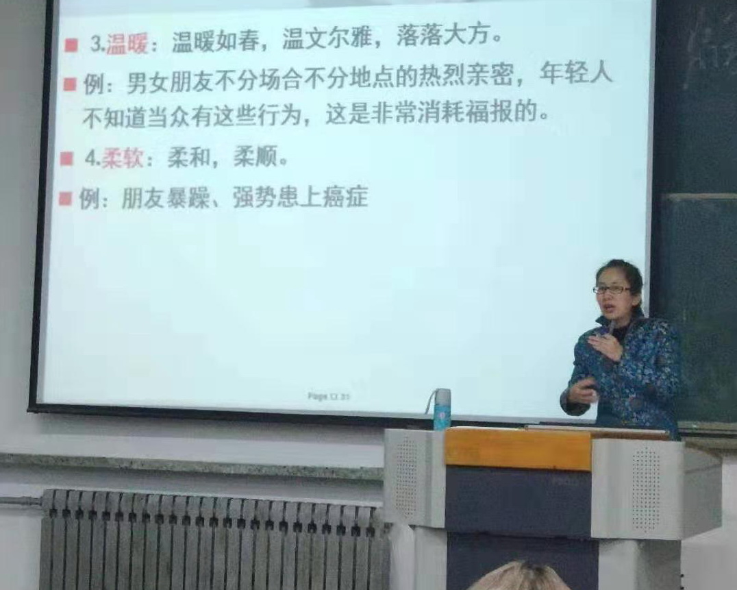 张明霞老师经验丰富,情感真挚,立足于当代社会和大学校园中普遍存在的共性问题,向同学们提出要做到“十德”和“十戒”。
