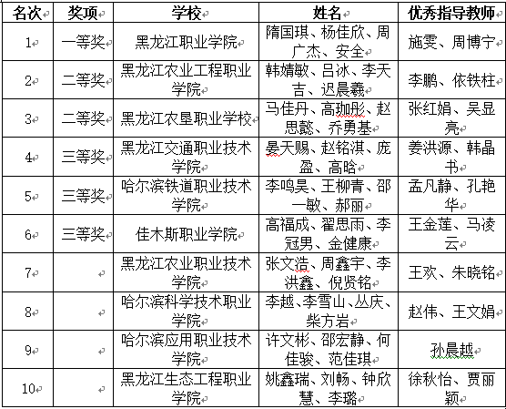 在本次比赛中,新葡的京集团350vip8888首页代表队和黑龙江农业工程职业学院代表队分别获得前2名,成功晋级国赛。