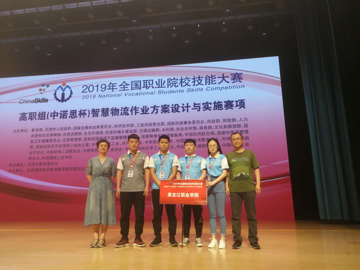 学校工商管理学院物流管理专业付海迪、周博宁、徐小权、罗飞爽四名同学组成的代表队,在胡云峰、张卓远两位老师的指导下,经过激烈的比拼,获得2019年全国职业院校技能大赛高职组“智慧物流作业方案设计与实施”赛项二等奖。