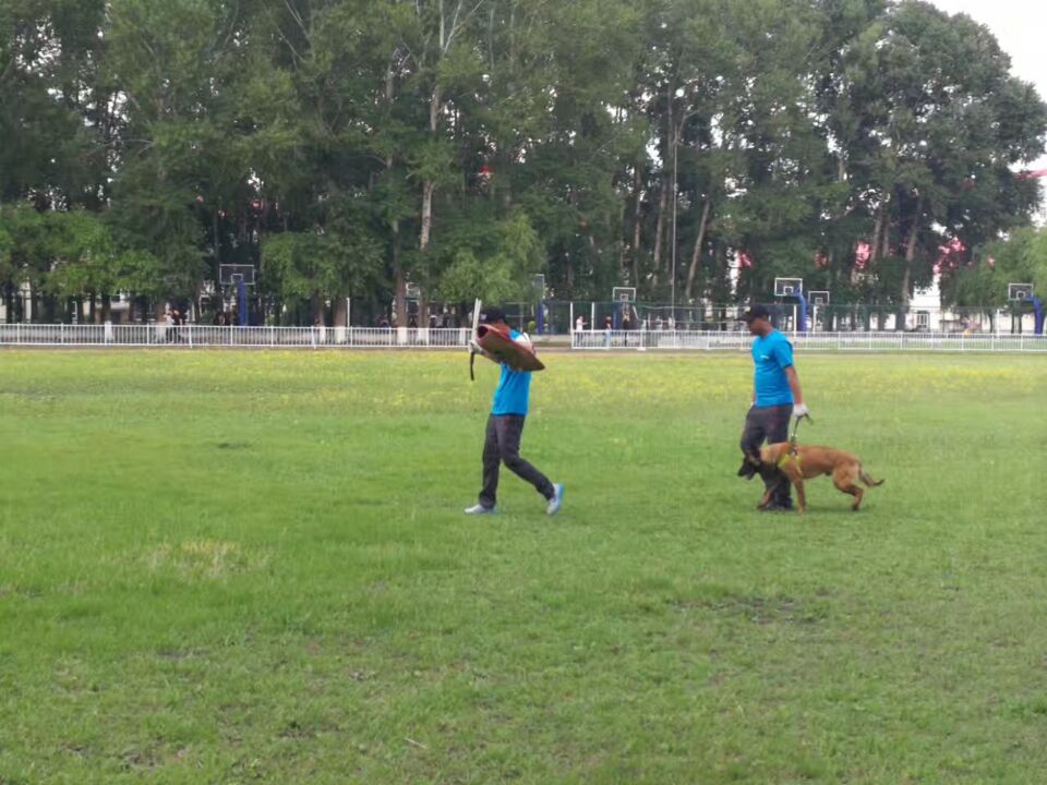 随后在讲解员的口令下,指导手进行拉布拉多犬、秋田犬,比格犬赛级展示;训犬师进行罗威纳犬牵引、随行、坐、等待、卧、立、躺、滚、前来、靠、腿下绕行、坐立、衔取、找物品、送回等科目展示;马犬的扑咬,袭击,拦截、押送等科目展示。
